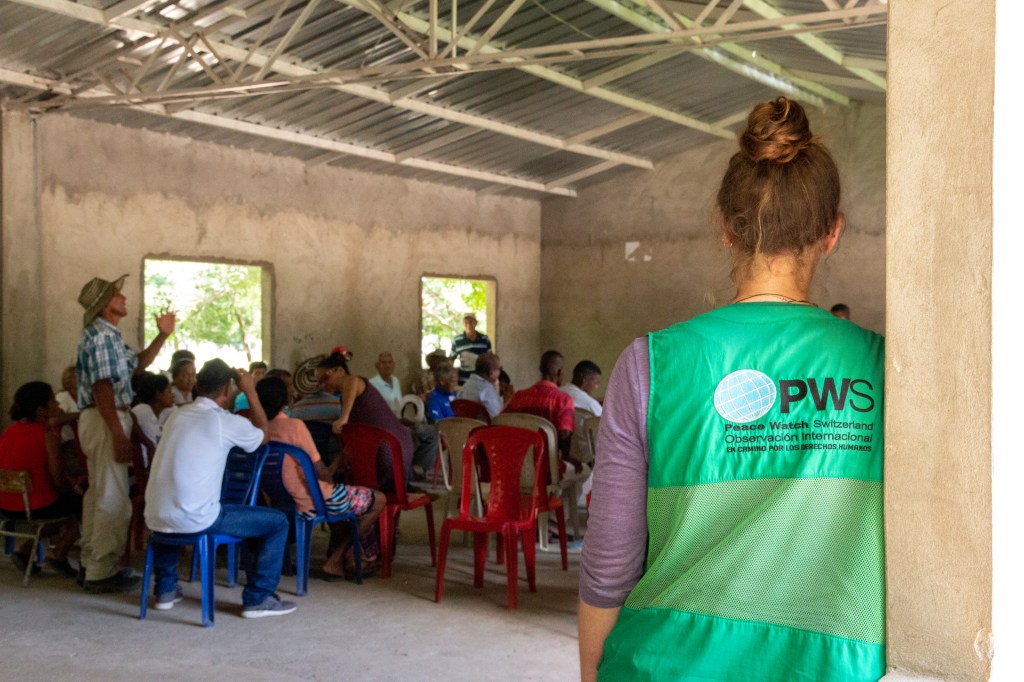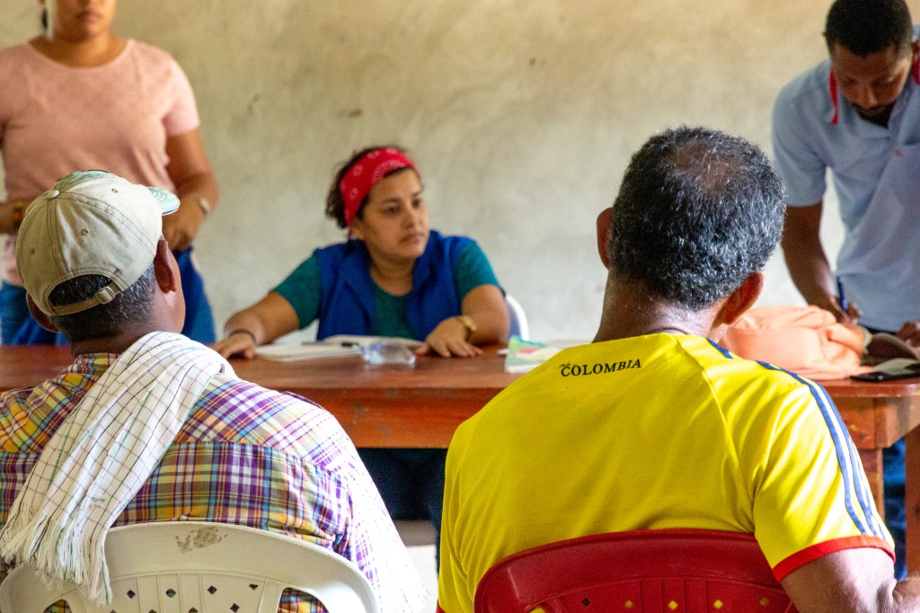 KOLUMBIEN. Die Unidad para la atención y reparación integral a las Víctimas stattet ASOCAB (Asociación de Campesinos de Buenos Aires) gerade einen Besuch ab. Zwei Frauen, Mitarbeiterinnen von einer der zahlreichen Institutionen des Staates, die mit dem Abklingen des bewaffneten Konflikts geschaffen wurden, sitzen an einem langen Holztisch vor ungefähr 40 Betroffenen der Gemeinden Buenos Aires und Las Pavas.