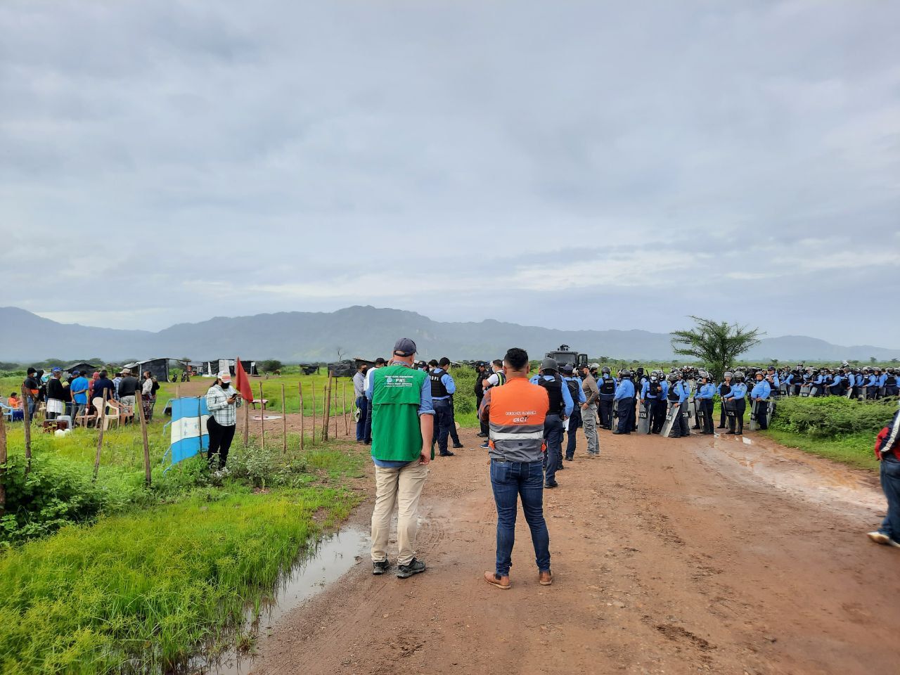 Al cabo de unas tres horas, la policía entró en el terreno y ofreció su ayuda para despejarlo. Un policía dijo: “Ya no soporto el sol y aún nos queda mucho camino por recorrer”. Como el convoy había viajado desde Tegucigalpa, querían partir lo antes posible. La policía se quejó de haber esperado bajo el sol mientras el grupo de campesinos era obligado a desalojar sus casas.