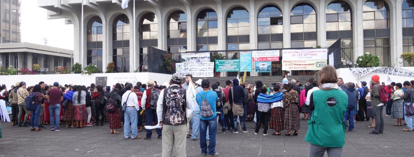 GUATEMALA. Dans un article précédent, je vous avais parlé de la communauté indigène de Corozal Arriba, située dans une zone frontalière avec le Honduras, engagée dans la lutte pour la récupération de ses terres et victime de violence et de criminalisation. Je vous avais également parlé d’innocents placés en détention provisoire pour un crime qu’ils n’ont pas commis et dans l’attente du procès depuis une année. Et bien, le jour du procès a fini par arriver. Les accusés ont fait leur déclaration, les premiers témoins ont été entendus et le calendrier des prochaines audiences a été publié. On pourrait penser à priori qu’il s’agit de la dernière ligne droite, mais en réalité, c’est plutôt un marathon qui s’annonce pour les détenus, leurs familles et la communauté de Corozal Arriba. Continue reading